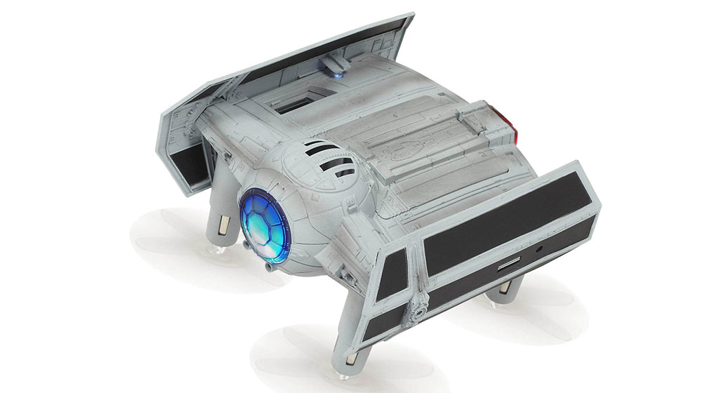 Star Wars - Tie Fighter dron karakteriše nova tehnologija obrnutog pogona koja dostiže brzinu i do 35MPH. Nudi mogućnost borbe uživo sa drugim Star Wars dronovima. Ima tri brzine, prilagođene iskustvu pilota, kao i T-Mode opciju za početnike i pomoć pri letenju.